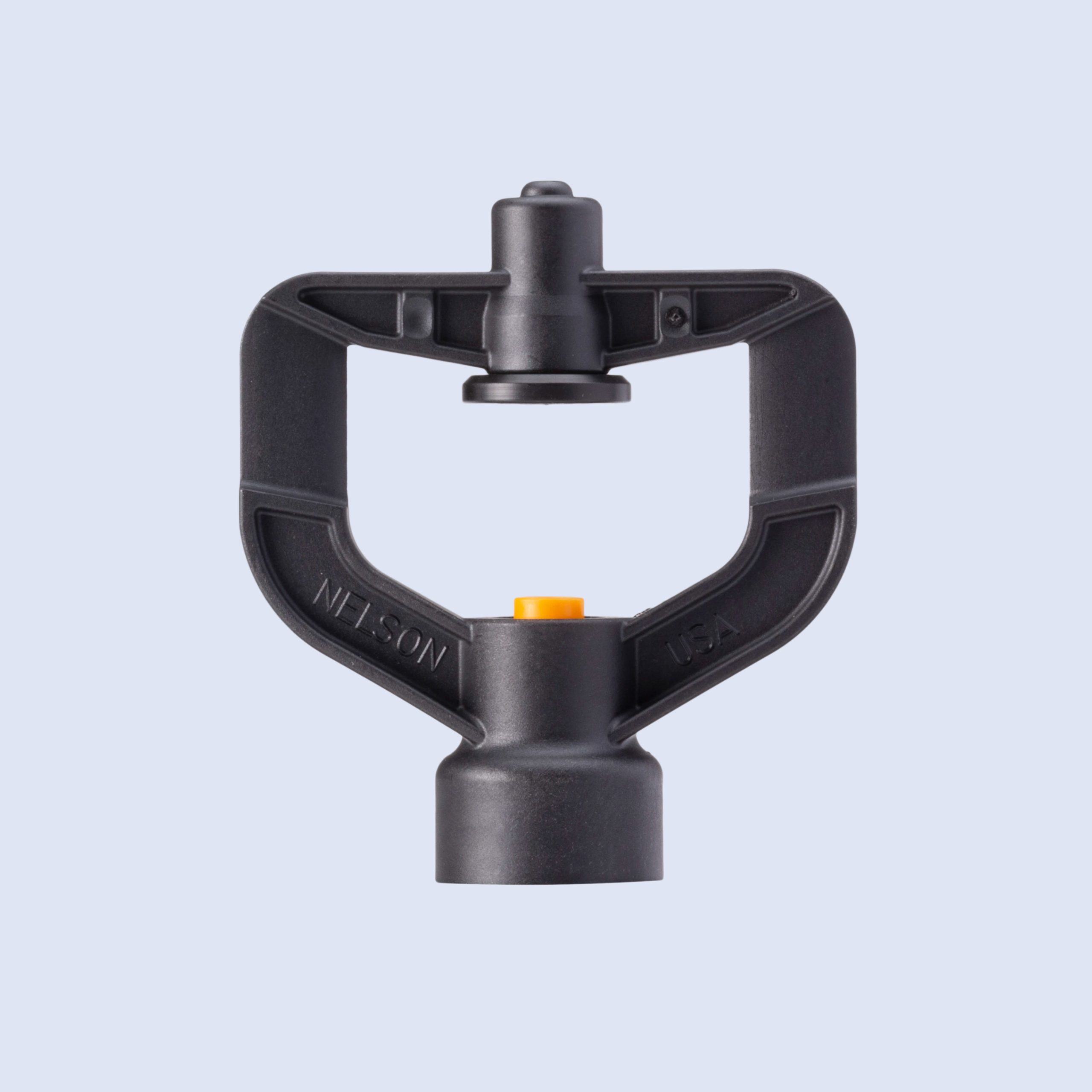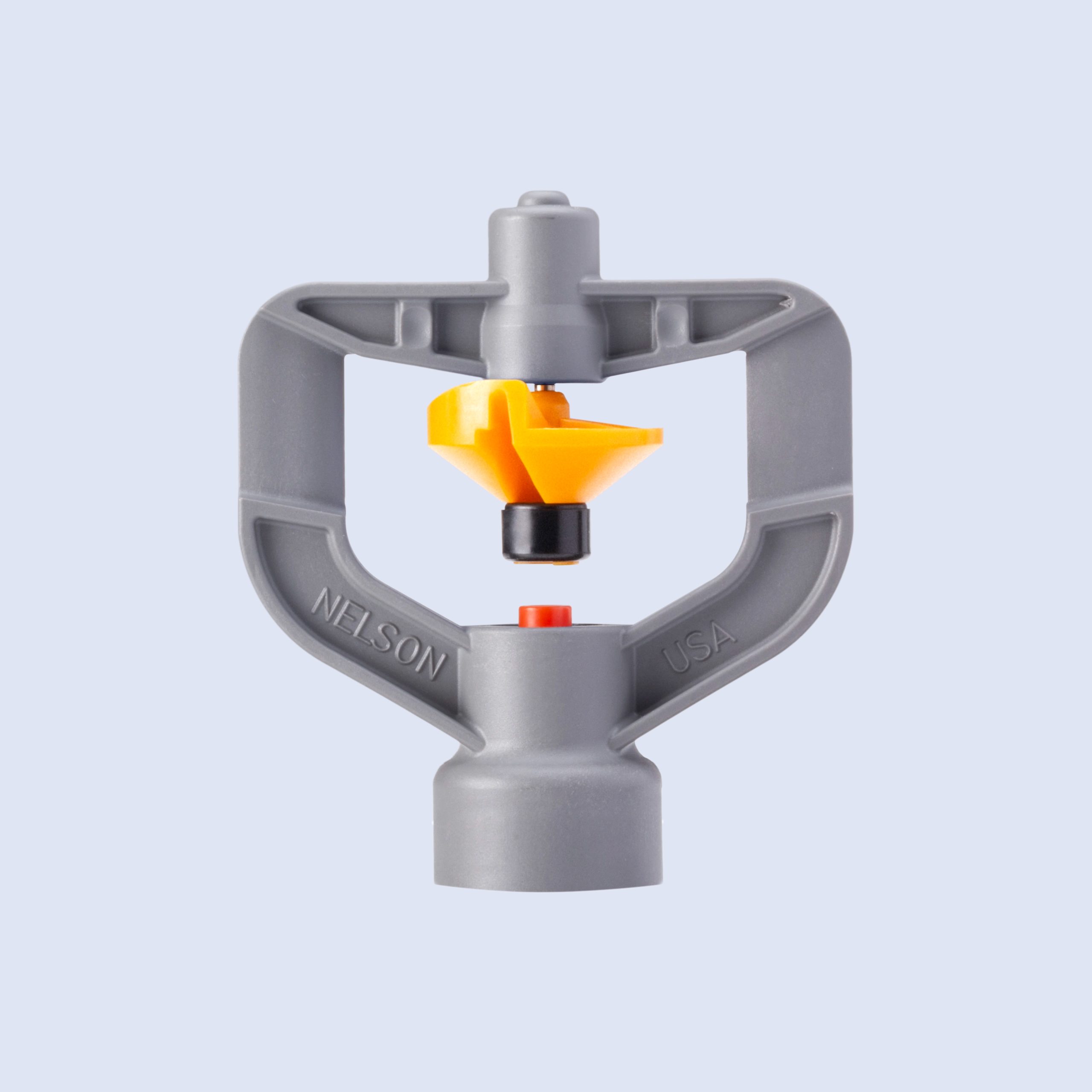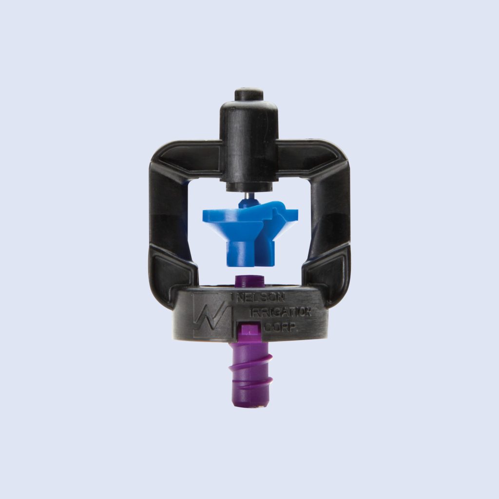 Wide area coverage, even water distribution resembling rain, high water use efficiency compared to flood systems, and ease of applying liquid fertilizers or pesticides
